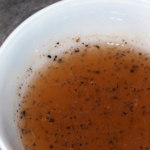 - Essig, Zucker, Salz und Pfeffer in ein Gefäß geben und so lange schütteln bis sich Salz und Zucker aufgelöst haben.