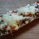 - Das Baguette halbieren und längs aufschneiden. Alle Viertel mit Butter und der Crème bestreichen. Mit Champignons, Zwiebeln und Tomaten belegen. Etwas frische Blattpetersilie darüber streuen. Salz und Pfeffer über die Baguettes streuen. Großzügig den geriebenen Käse über die Baguettes geben. Im vorgeheizten Backofen bei 200 °C etwa zehn Minuten backen, bis der Käse zerlaufen ist.