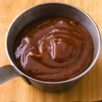 - Ketchup, Zucker, Melasse, Apfelessig, Worcestershiresauce, Senfpulver, Paprikapulver, Zitronensaft, Wasser, Kaffee, Salz und Pfeffer vermengen und in einer Pfanne aufkochen lassen.