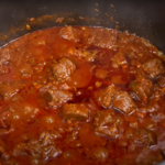 - Einen schweren Topf oder Schmortopf erhitzen und den Speck knusprig braten. Sobald Sie fertig sind, fügen Sie die Zwiebeln hinzu und kochen Sie sie bei mittlerer bis hoher Hitze, bis sie goldbraun werden. Paprika und Knoblauch dazugeben und weitere zwei Minuten anbraten. Als nächstes geben Sie das Rindfleisch in den Topf und kochen es eine Minute lang, bis es etwas von seiner rosa Farbe verliert. Das Paprikapulver einrühren und den Topf vom Herd nehmen.