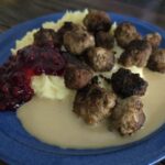 - Dann kann serviert werden! Die Köttbullar mit Kartoffelpüree und reichlich Sauce anrichten. Dazu reicht man Preiselbeerkompott und schnell eingelegte Gurken als Salat.