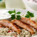 - Die Putenpfanne mit Bulgur servieren und mit einem Klecks Kräuterjoghurt garnieren.