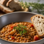 Linsen-Tomaten-Eintopf mit Vollkornbrot