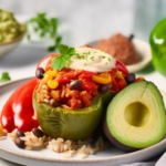 Gefüllte Paprika mit Schwarzen Bohnen, Braunem Reis und Avocado-Salsa