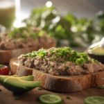 - Die Avocado-Thunfisch-Mischung gleichmäßig auf den Toasts verteilen.