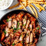 - Den Lomo saltado auf Teller verteilen und servieren.