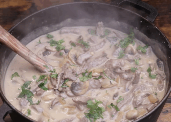- Butterschmalz erhitzen, Zwiebeln goldgelb anschwitzen. Die Champignons zugeben, mit Salz & Pfeffer würzen. Jetzt mit Mehl bestäuben und kurz anschwitzen. Alles mit Rinderbrühe ablöschen, gut verrühren und aufkochen lassen.